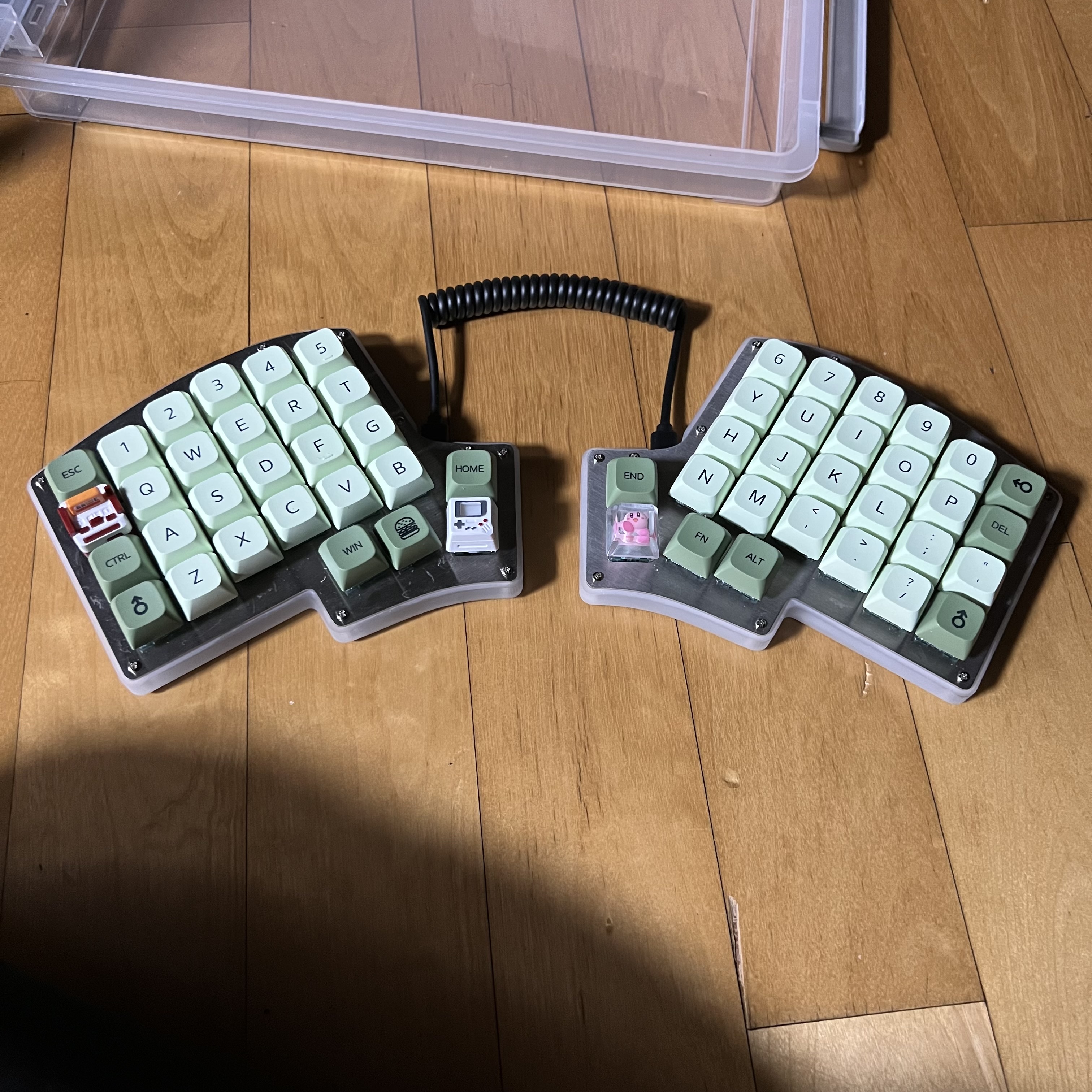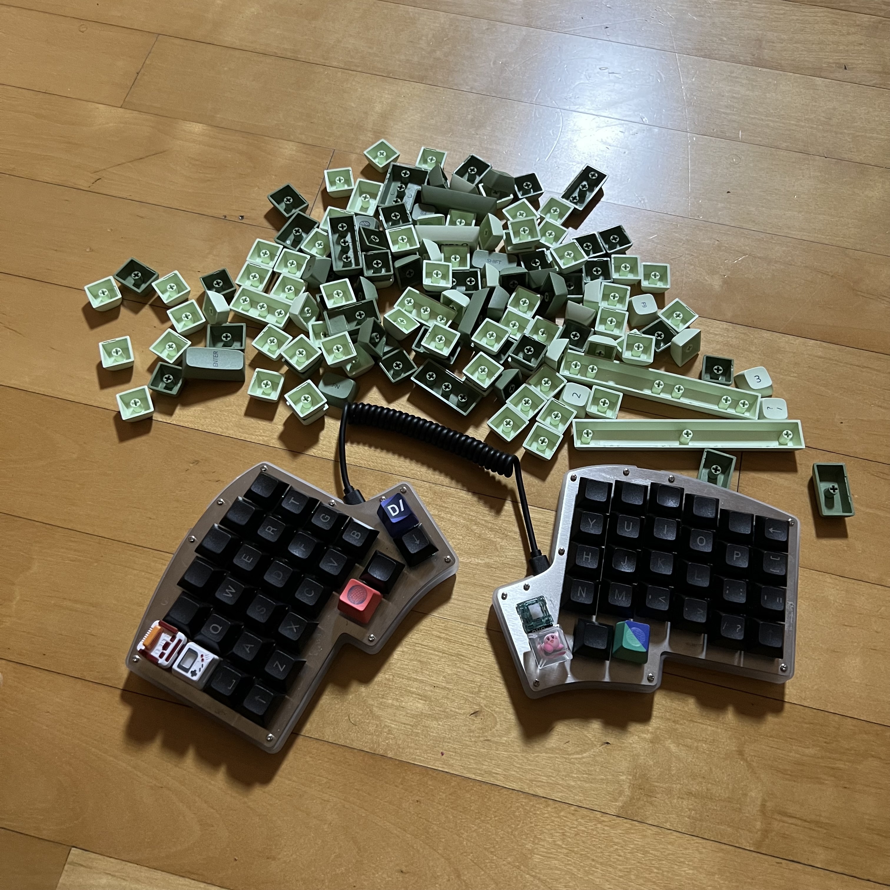 와! 말차맛 IRIS56! 딱 맞는 키들이 부족한데다가 우측에 '키는 연녹색이어서, 아무래도 아쉬운 감이 없지 않습니다. 으으으 ' ㅇ'... 물론 적당한 색으로 갈아끼웠으면 큰 문제는 없었겠지만, 가끔씩 키가 헷깔린단말이죠. 어차피 외워서 칠 거 큰 문제야 없겠지만...