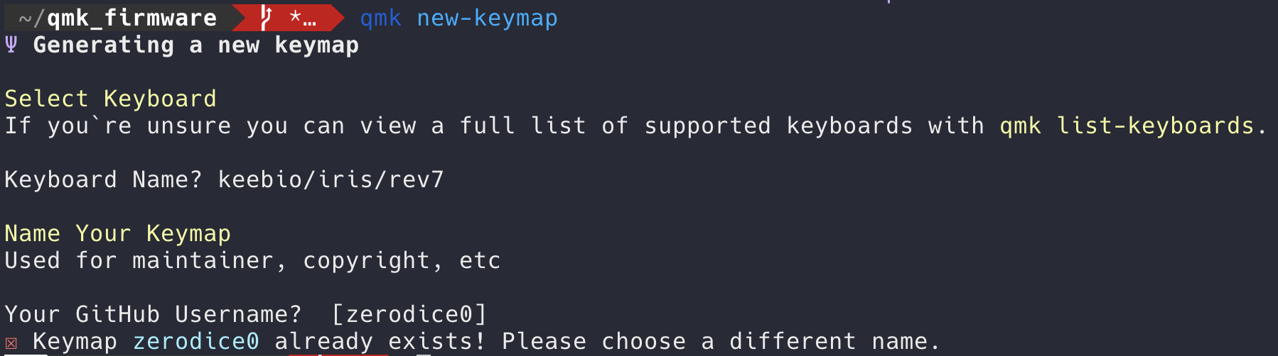 여기서 <keyboard>는 qmk list_keyboards 입력시 출력되는 리스트 중에서 고르면 되고, <keymap>은 keymap.c가 위치한 경로를 입력해주면 된다.