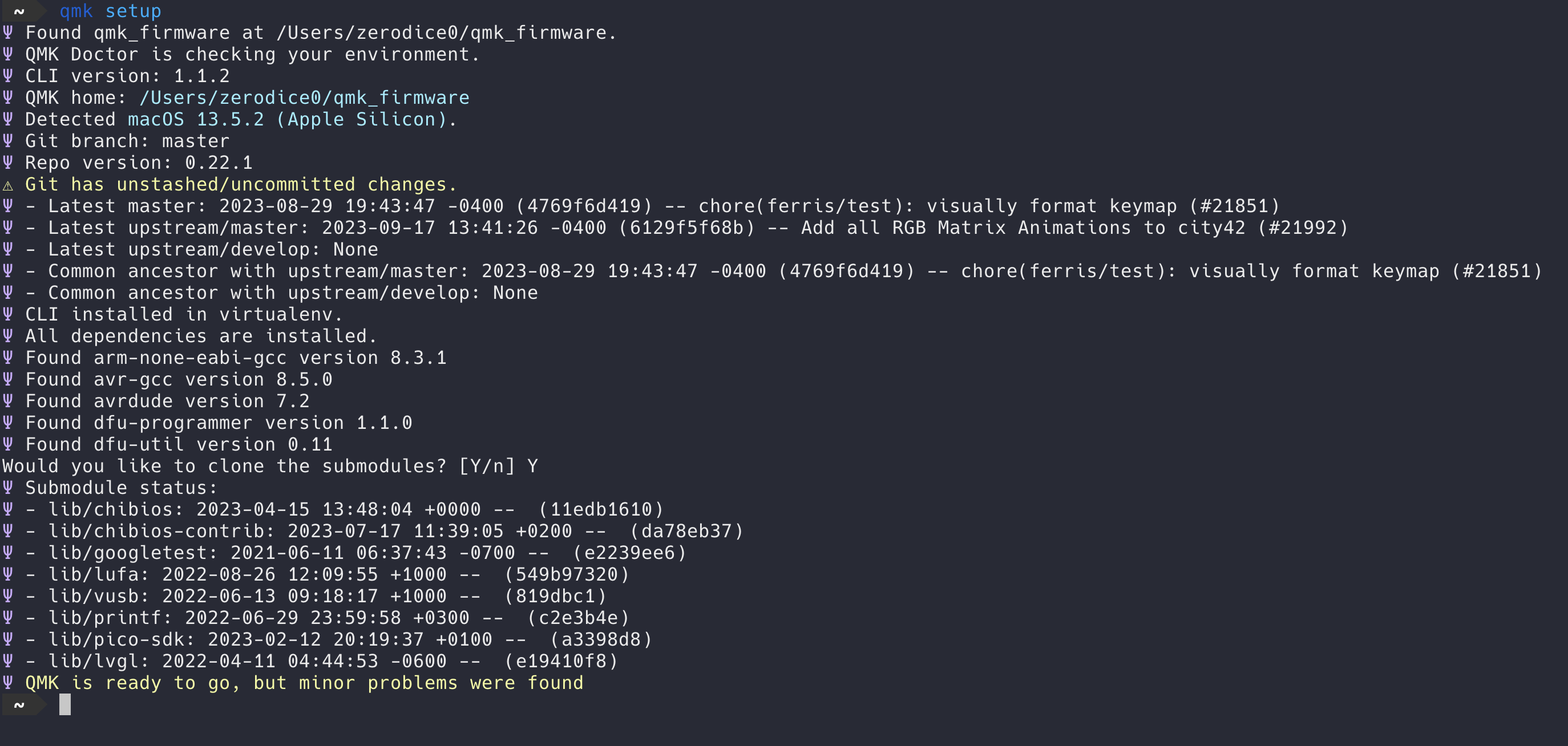 설치가 완료되면 qmk setup을 입력해서 설정을 완료하면 된다.