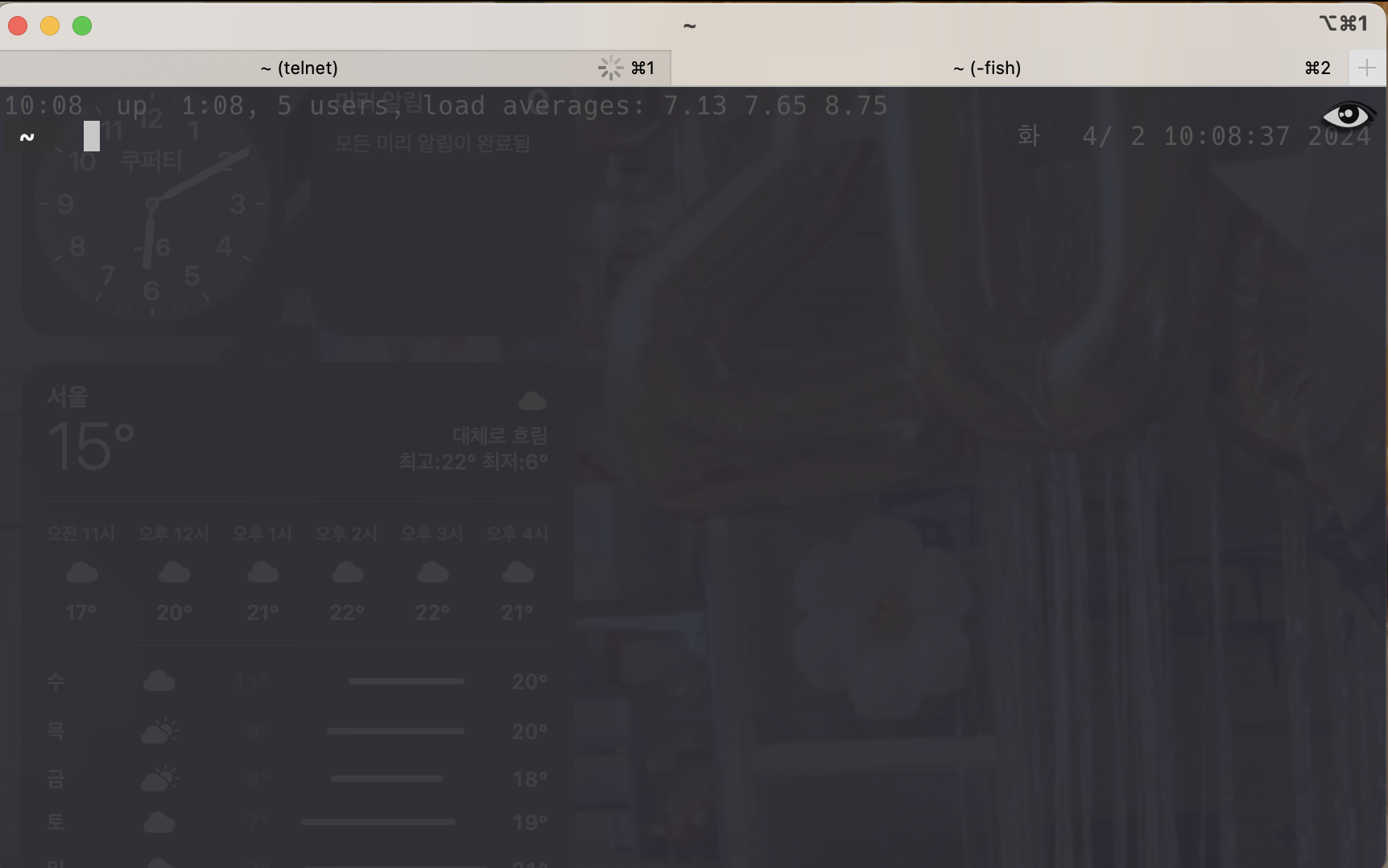 무슨 키를 눌렀는지 기억이 가물가물한데, iTerm2를 사용하는 도중 우측 상단에 눈 모양이 표시되기 시작했다. 엥, 이게 뭐지... 싶어서 구글에 'iTerm2 눈'을 검색해보니 iTerm2를 꾸미는 글만 한가득. 한참을 뒤적거린 뒤에야 다음과 같은 글을 찾을 수 있었다.